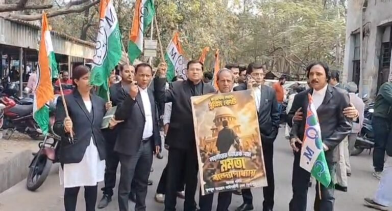 মুখ্যমন্ত্রী মমতা বন্দ্যোপাধ্যায়ের সুপ্রিম কোর্টে আইনি লড়াইকে স্বাগত জানিয়ে বৃহস্পতিবার দুর্গাপুরে তৃণমূলপন্থী আইনজীবীরা মিছিল করেন। দুর্গাপুর মহকুমা আদালত চত্বরে দুপুরে এই মিছিল অনুষ্ঠিত হয়।