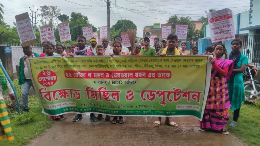 আদিবাসী ২২মৌজার পক্ষ থেকে ১২দফার দাবিতে বিক্ষোভ ও স্মারকলিপি প্রদান বিডিও অফিসে