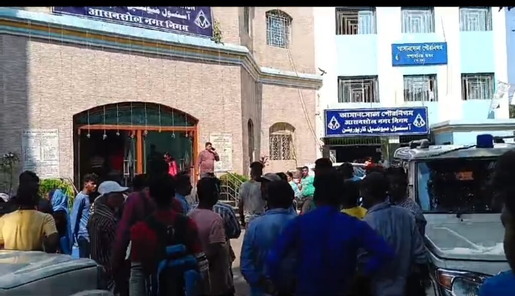ফের বেতন বৃদ্ধির জন্য আসানসোল পৌরনিগমে বিক্ষোভ সাফাই কর্মীদের
