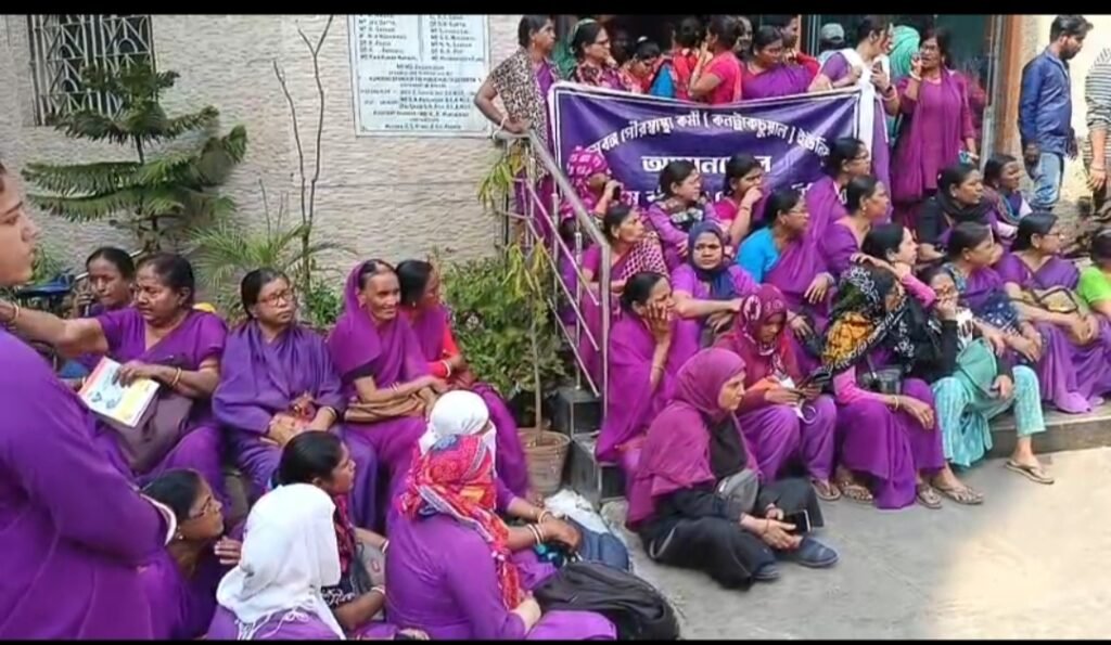 বেতন বৃদ্ধি ও স্বীকৃতির দাবিতে আসানসোল পুরনিগমে আশা কর্মীদের বিক্ষোভ