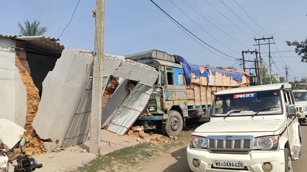 নিয়ন্ত্রণ হারিয়ে বাড়িতে ঢুকে পড়লো বিশাল মাল বোঝাই ট্রাক