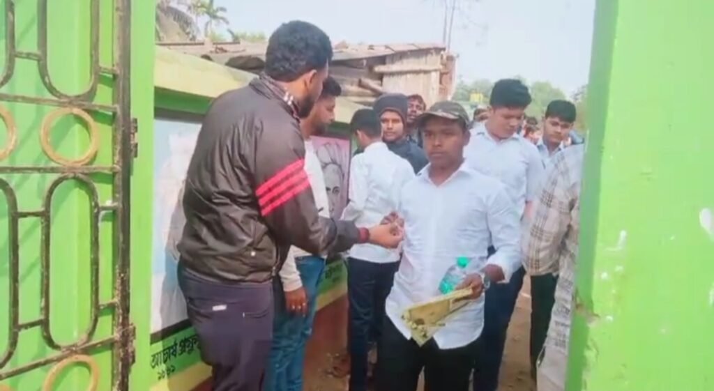 बंगाल में माध्यमिक परीक्षा केंद्रों पर दिखी राजनीतिक हलचल भाजपा ने बांटे पेन और गुलाब, तृणमूल ने दिए पानी की बोतल और पेन