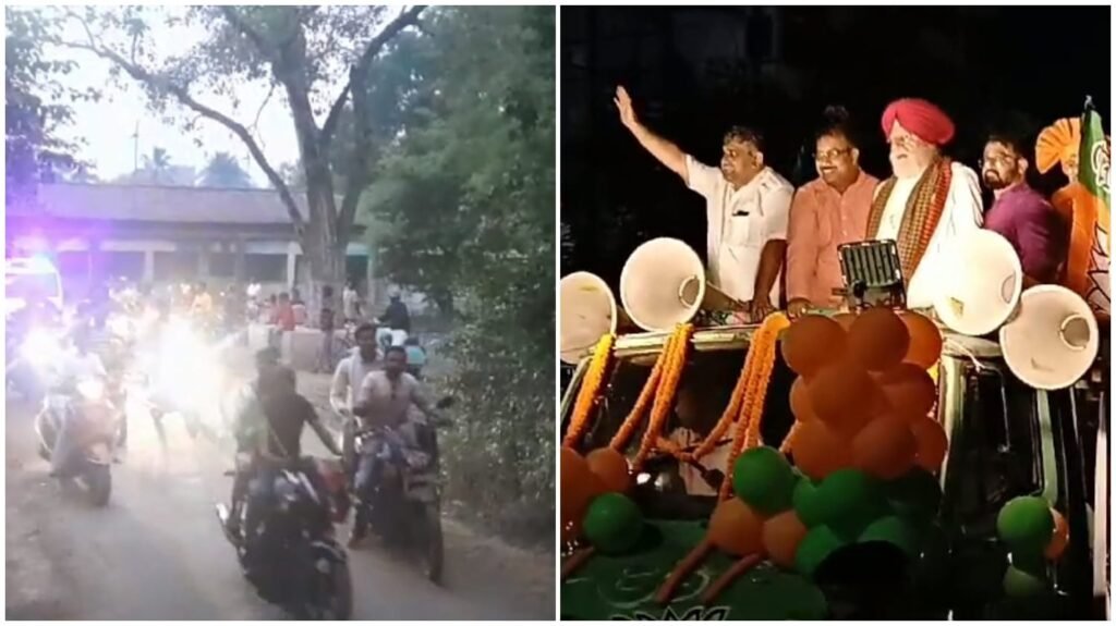 তৃণমূল ও বিজেপি দুই প্রার্থীর রোড শো এ হেলমেট বিহীন মোটরবাইক মিছিল