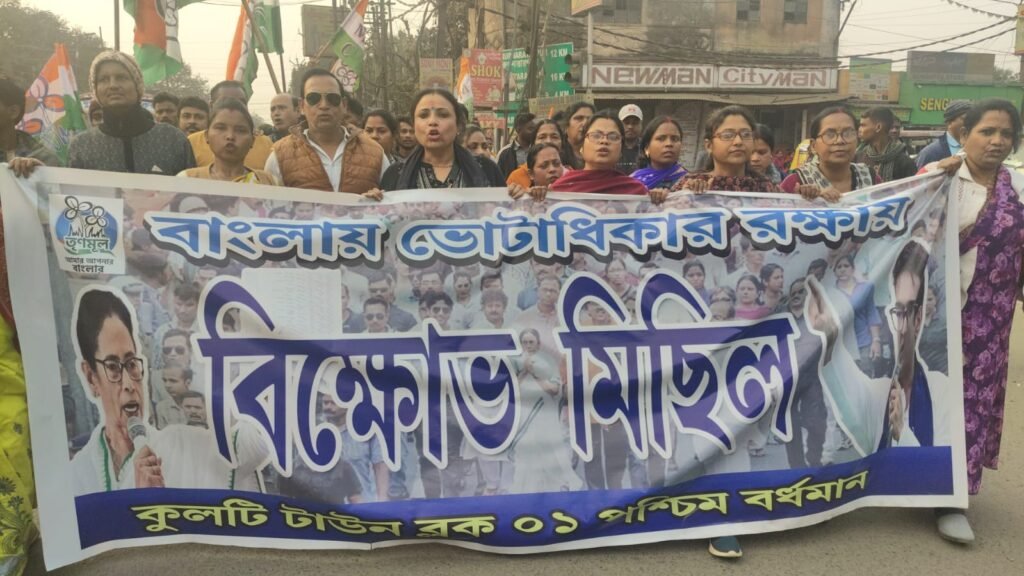 বাংলায় ভোটাধিকার রক্ষায় কুলতোড়া থেকে নিয়ামতপুর পর্যন্ত বিক্ষোভ মিছিল এবং প্রতিবাদ সভা তৃণমূলের