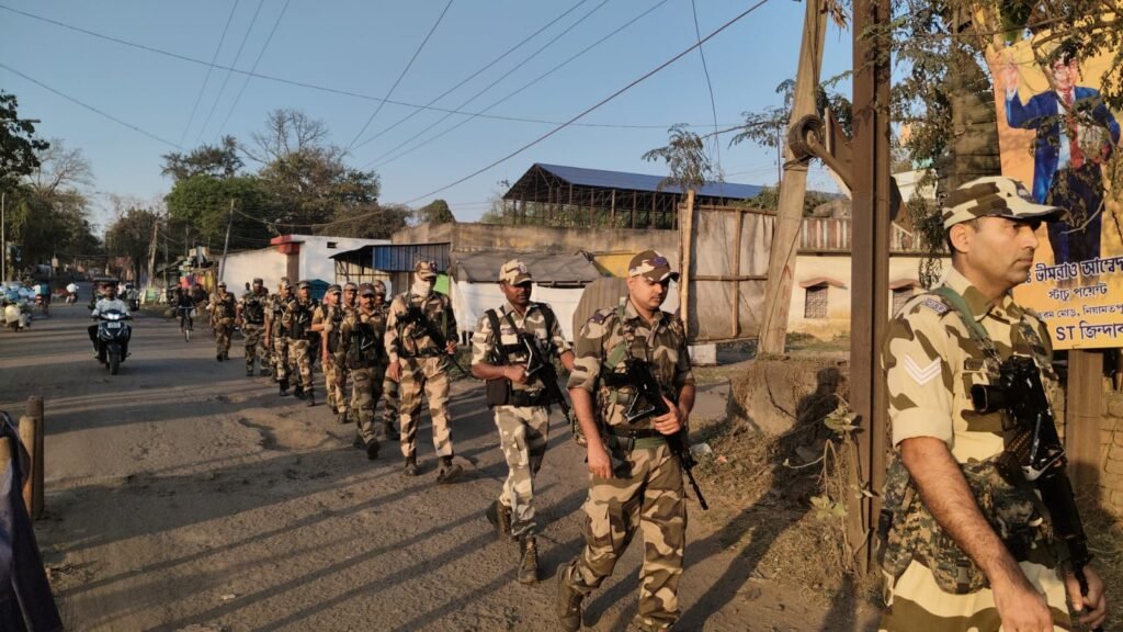 কুলটি-তে কেন্দ্রীয় বাহিনীর রুট মার্চ, নিয়ামতপুর নিউ থেকে চিনাকুড়ি বাজার পর্যন্ত পরিক্রমা