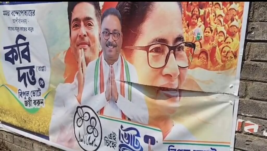 দুর্গাপুরে তৃণমূলের পতাকায় আগুন, ফ্লেক্স কেটে দেওয়ার অভিযোগে উত্তেজনা