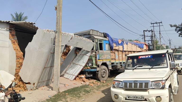 রবিবার সকাল বেলা একটি বাড়ির দেওয়াল ভেঙে ঢুকে পড়ল ট্রাক।সালানপুর থানার কল্যা পঞ্চায়েতের চয়নপুর গ্রামের কাছে এই ঘটনায় ব্যাপক চাঞ্চল্যের সৃষ্টি হয়েছে। বাড়িটির ব্যাপক ক্ষতি হলেও ,কেউ হতাহত হয়নি বলে খবর।ট্রাকের চালককে আটক করেছে গ্রামবাসীরা।তবে ক্ষতি পূরনের দাবীতে কিছুক্ষণ পথ অবরোধ করে গ্রামবাসীরা ।পরে খবর পেয়ে ঘটনাস্থলে পুলিশ এলে ট্রাক ড্রাইভারকে আটক করে ও রাস্তা অবরোধ সরিয়ে ফেলে।কল্যা পঞ্চায়েত প্রধান শ্রীকান্ত পাতর জানান প্রতিদিনের মতই তারা বসে ছিলেন কিন্তু হঠাৎ রবিবার সকাল দশটার সময় একটি বিকট শব্দে ছুটে আসেন এলাকার বাসিন্দারা।দেখতে পান,গোরান্ডি থেকে রূপনারায়ণপুরের দিকে আসছিল ঠিক সেই সময়ই চয়নপুর গ্রামের মাথায় দয়াময় মন্ডল নামের এক ব্যক্তির বাড়িতে ট্রাকটি নিয়ন্ত্রণ হারিয়ে বাড়ির দেওয়াল ভেদ করে ঢুকে পড়ে।সজোরে প্রবল আঘাতে বাড়ির দেওয়াল ভেঙে পড়ে । ট্রাকের সামনের অংশ দুমড়ে মুচড়ে যায়।বাড়ির মালিক দয়াময় মন্ডল জানান বাড়ির ওই অংশে দোকান ছিলো। তার অনেক ক্ষয়ক্ষতি হয়েছে সেইসব ক্ষতিপূরণ তার চাই। তবে ট্রাকের মালিকের সঙ্গে কোন যোগাযোগ করা যায়নি।