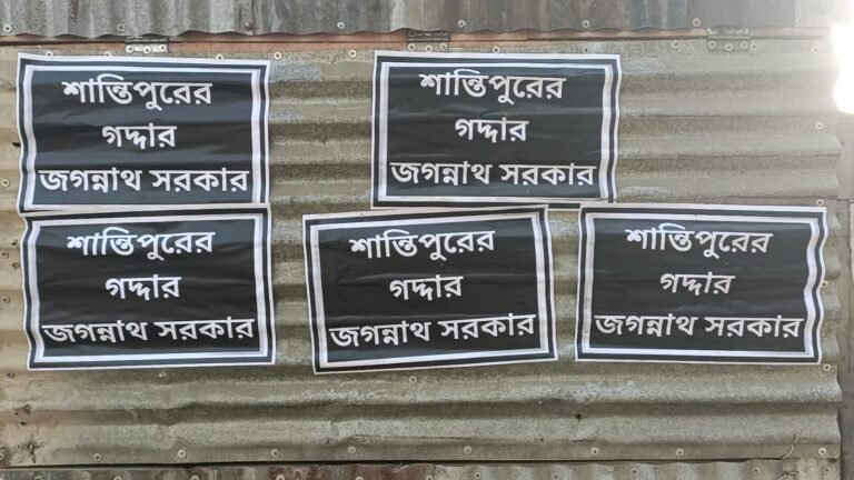 কিন্তু তার আগেই শান্তিপুর শহর ও আশপাশের এলাকায় জগন্নাথ সরকারের নামে এই ধরনের পোস্টার পড়তে দেখা যায়, যা ঘিরে চাঞ্চল্য ছড়ায়।