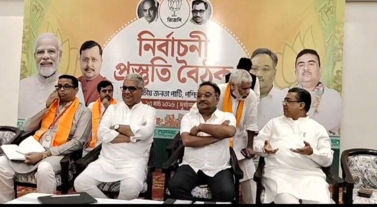 নির্ভীক বাংলা,দুর্গাপুর: আসন্ন বিধানসভা নির্বাচনকে সামনে রেখে ভারতীয় জনতা পার্টির গুরুত্বপূর্ণ প্রস্তুতি বৈঠক অনুষ্ঠিত হলো শহরের মুচিপাড়ার একটি বেসরকারি হোটেলে। রাঢ় বঙ্গের বিভিন্ন জেলার প্রার্থীদের নিয়ে আয়োজিত এই বৈঠক ঘিরে রাজনৈতিক মহলে যথেষ্ট চর্চা শুরু হয়েছে।