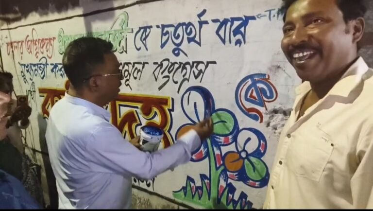 নির্ভীক বাংলা , শ্যাম দাস, দূর্গাপুর:আসন্ন বিধানসভা নির্বাচনকে সামনে রেখে তৃণমূল কংগ্রেস-এর প্রচারে নতুন মাত্রা যোগ করলেন কবি দত্ত। দুর্গাপুর পশ্চিম বিধানসভা কেন্দ্রের সদ্য ঘোষিত এই প্রার্থী এবার সরাসরি মাঠে নেমে কর্মীদের সঙ্গে হাত মিলিয়ে দেয়াল লিখনে অংশ নিলেন।