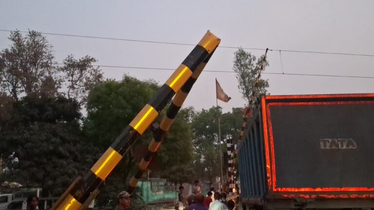 রেলকর্মীদের সূত্রে জানা গেছে, একটি ট্রেন চলে যাওয়ার পর নিয়ম অনুযায়ী গেট নামানো হচ্ছিল। সেই সময় গৌরান্ডী থেকে আসানসোলগামী একটি ডাম্পার দ্রুতগতিতে এসে লেভেল ক্রসিংয়ের গেট ভেঙে দেয়। ঘটনার জেরে ওই এলাকায় যান চলাচল সাময়িকভাবে বন্ধ হয়ে যায়।